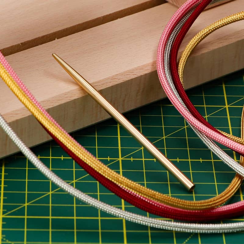 You probably don't have a Paracord needle lying about at home, but if you're going to work with Paracord more often, then buying one is certainly a good idea. You simply twist the Paracord firmly into the needle shaft, so you can then effortlessly insert the cord.